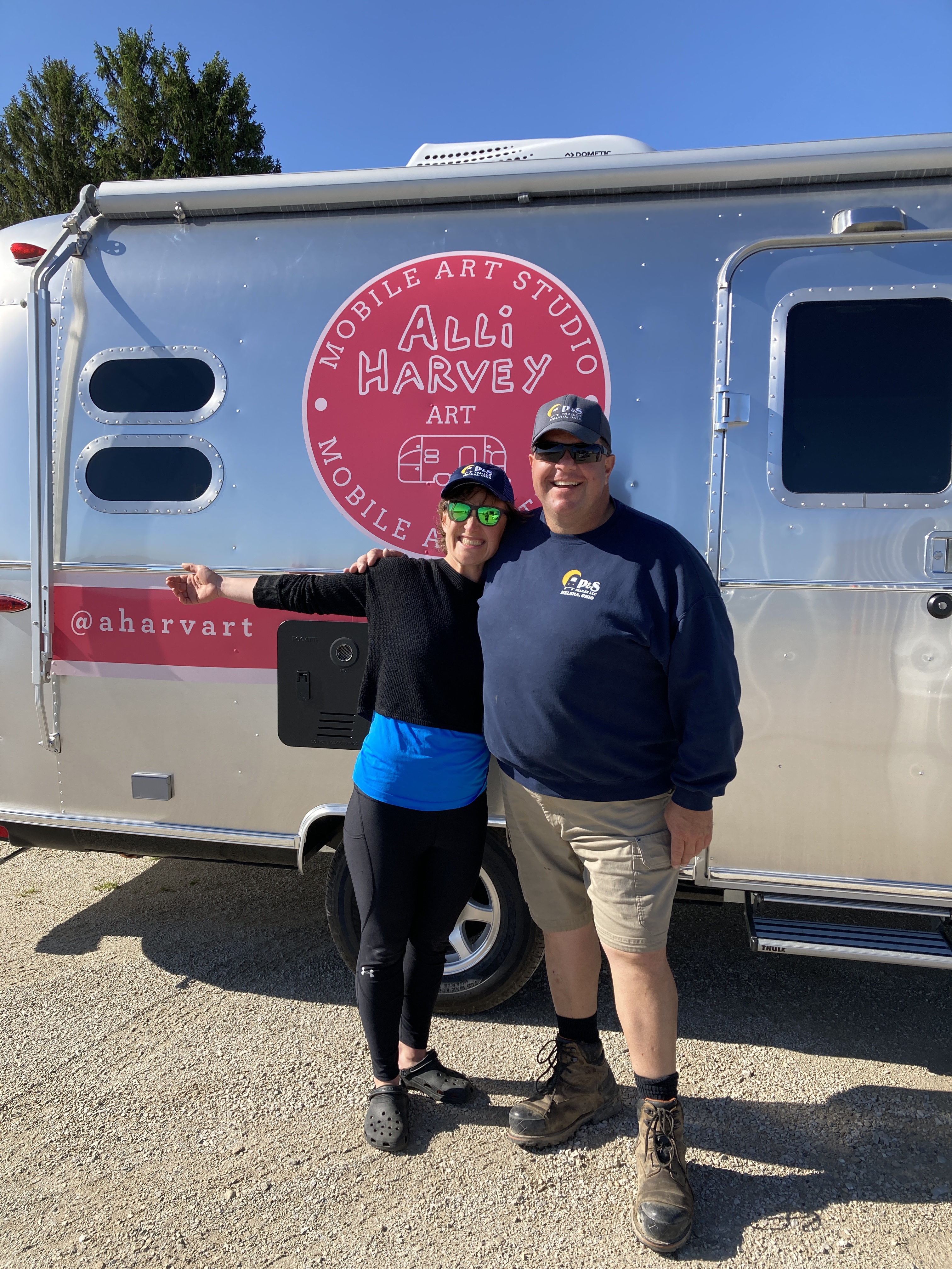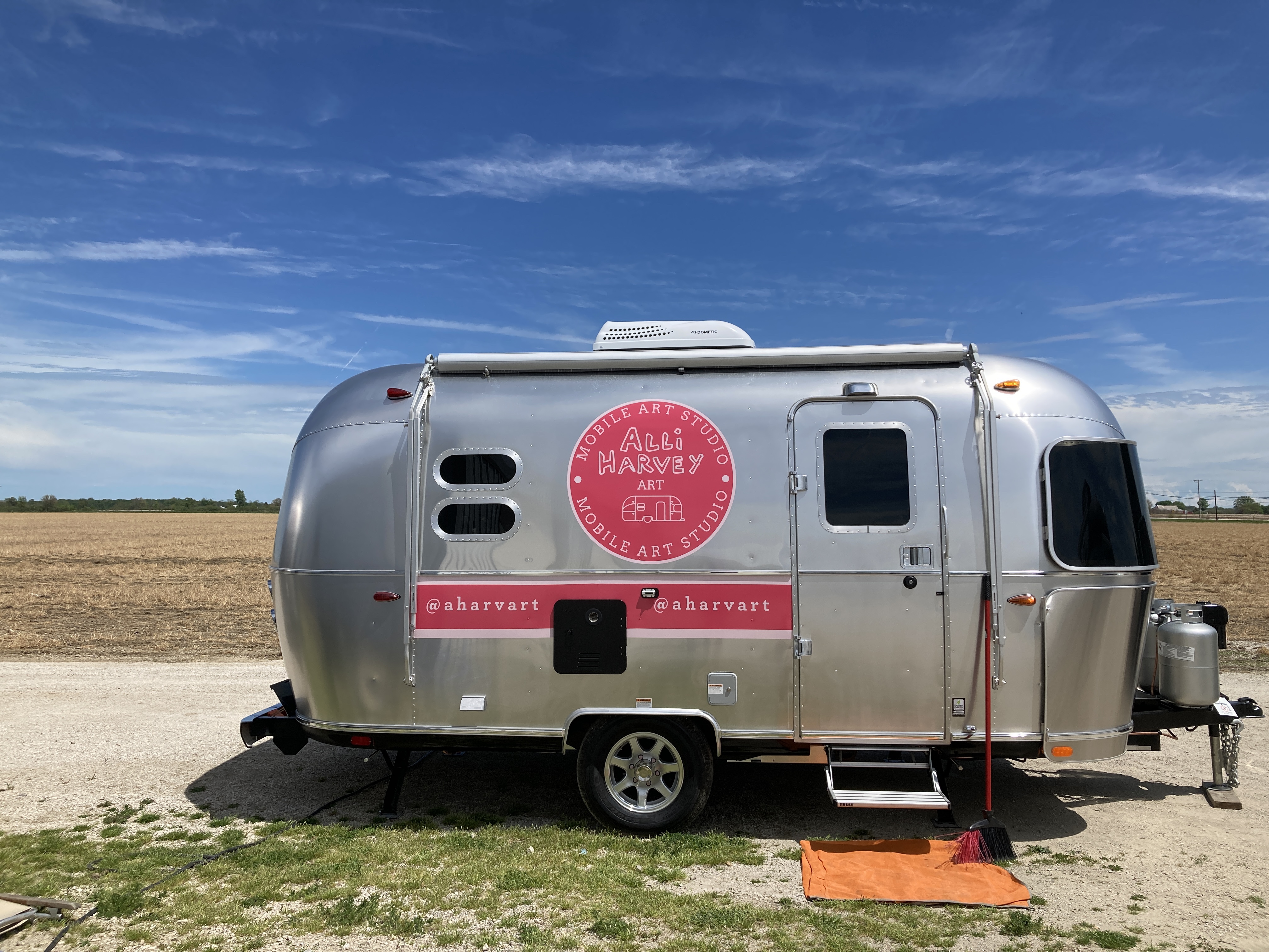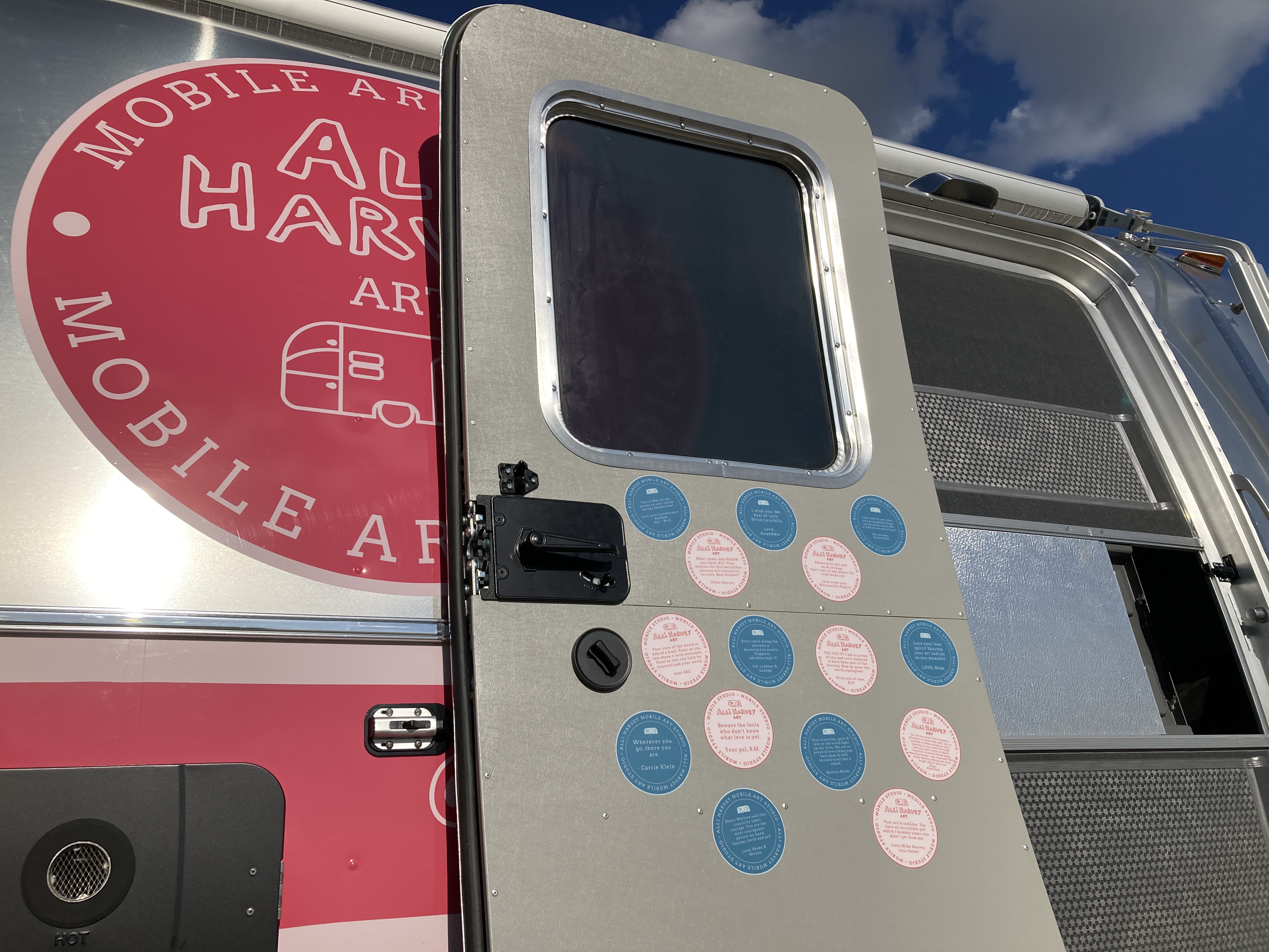 When I saw the studio in its entirety for the first time, with my new logos emblazoned on both sides and website on the back; the truly beautiful and iconic silver Airstream silhouette, I cried and laughed as I walked toward it, sharing the moment with the designer and my new friend, and one of the many people at the shop who worked on it (Kelly teased Tommy: “you made her cry!”). I couldn’t comprehend that this thing, this idea, something I’d gazed at the mockups for for hours, and even masking-taped out the dimensions in my dad’s basement to get a sense of the space – it was real, it was done, it was right there in front of me.