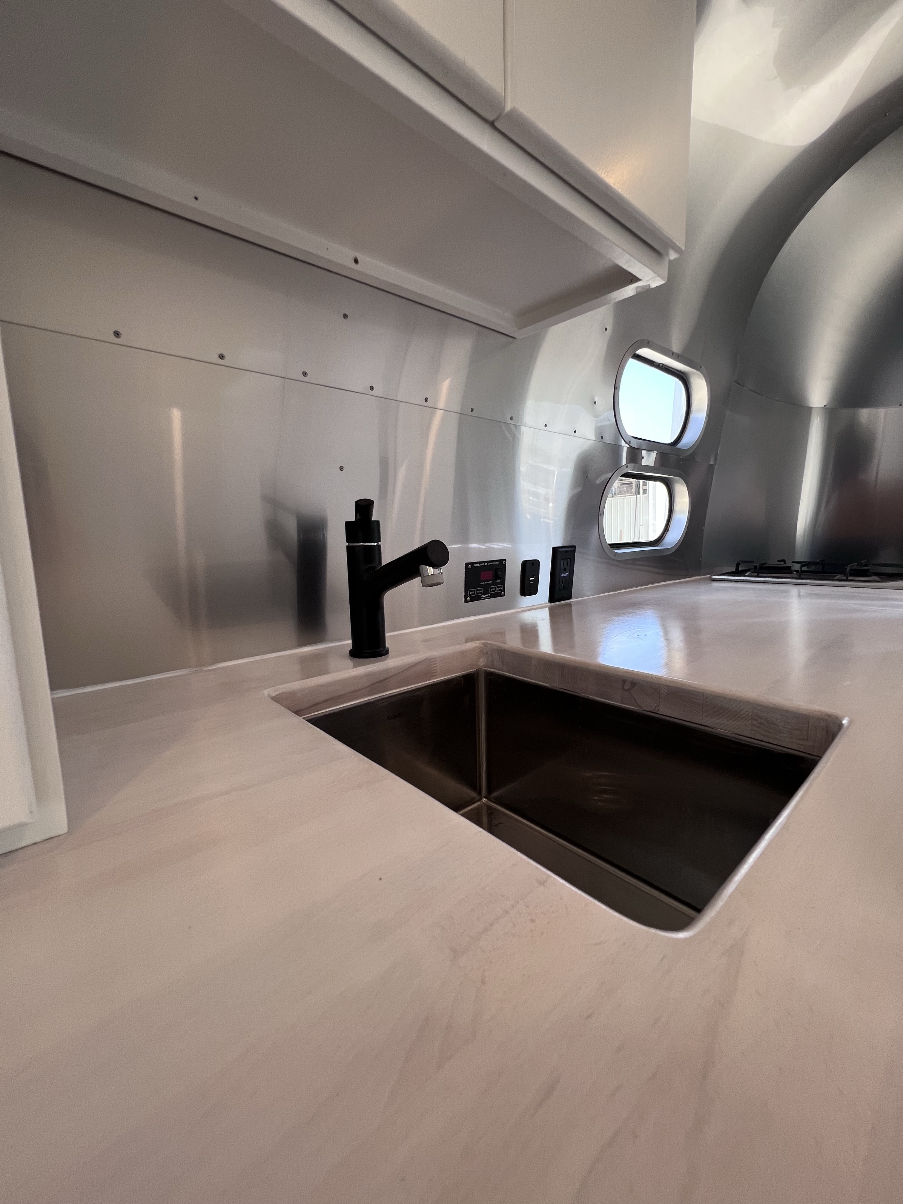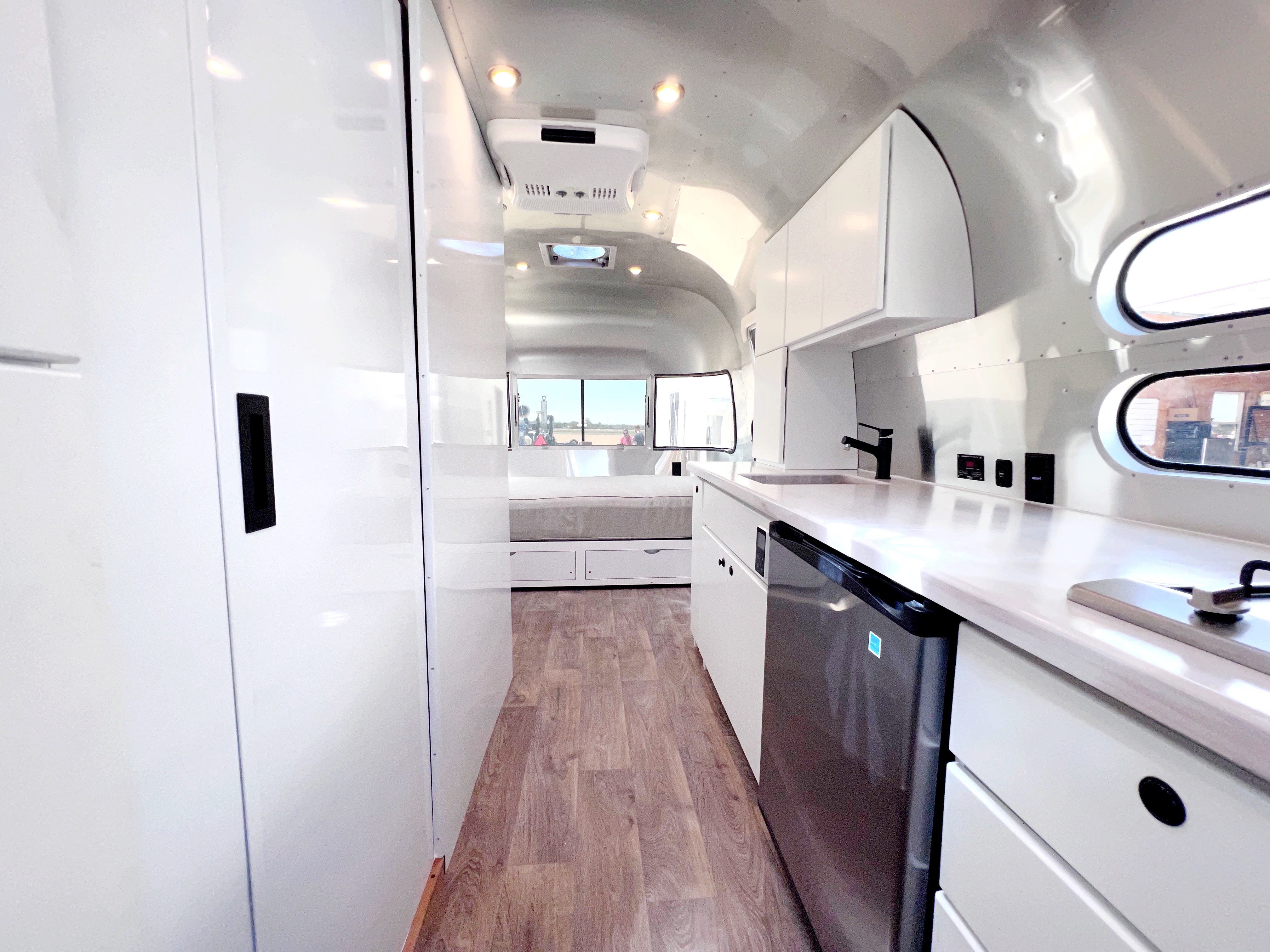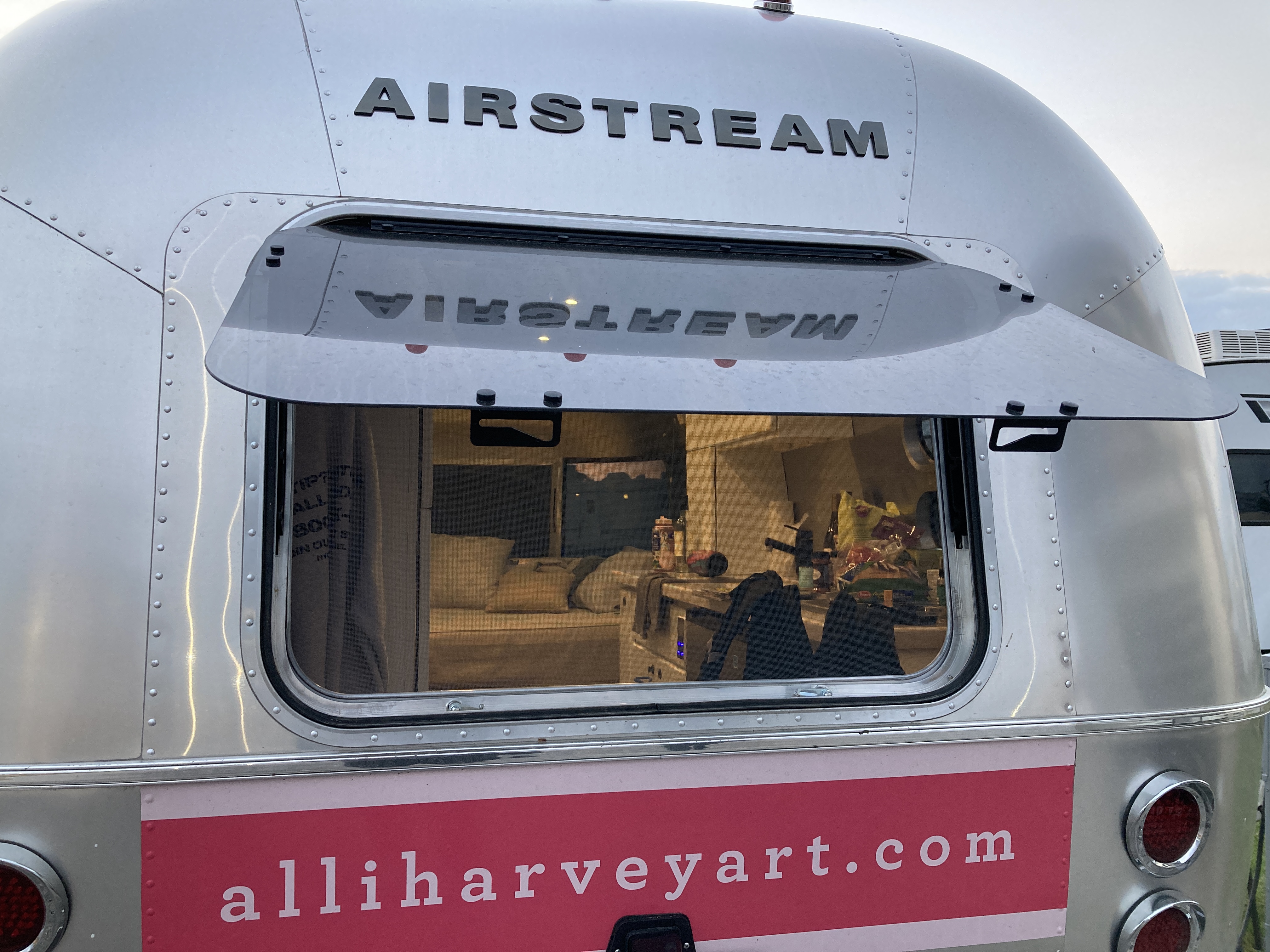 When I saw the studio in its entirety for the first time, with my new logos emblazoned on both sides and website on the back; the truly beautiful and iconic silver Airstream silhouette, I cried and laughed as I walked toward it, sharing the moment with the designer and my new friend, and one of the many people at the shop who worked on it (Kelly teased Tommy: “you made her cry!”). I couldn’t comprehend that this thing, this idea, something I’d gazed at the mockups for for hours, and even masking-taped out the dimensions in my dad’s basement to get a sense of the space – it was real, it was done, it was right there in front of me.