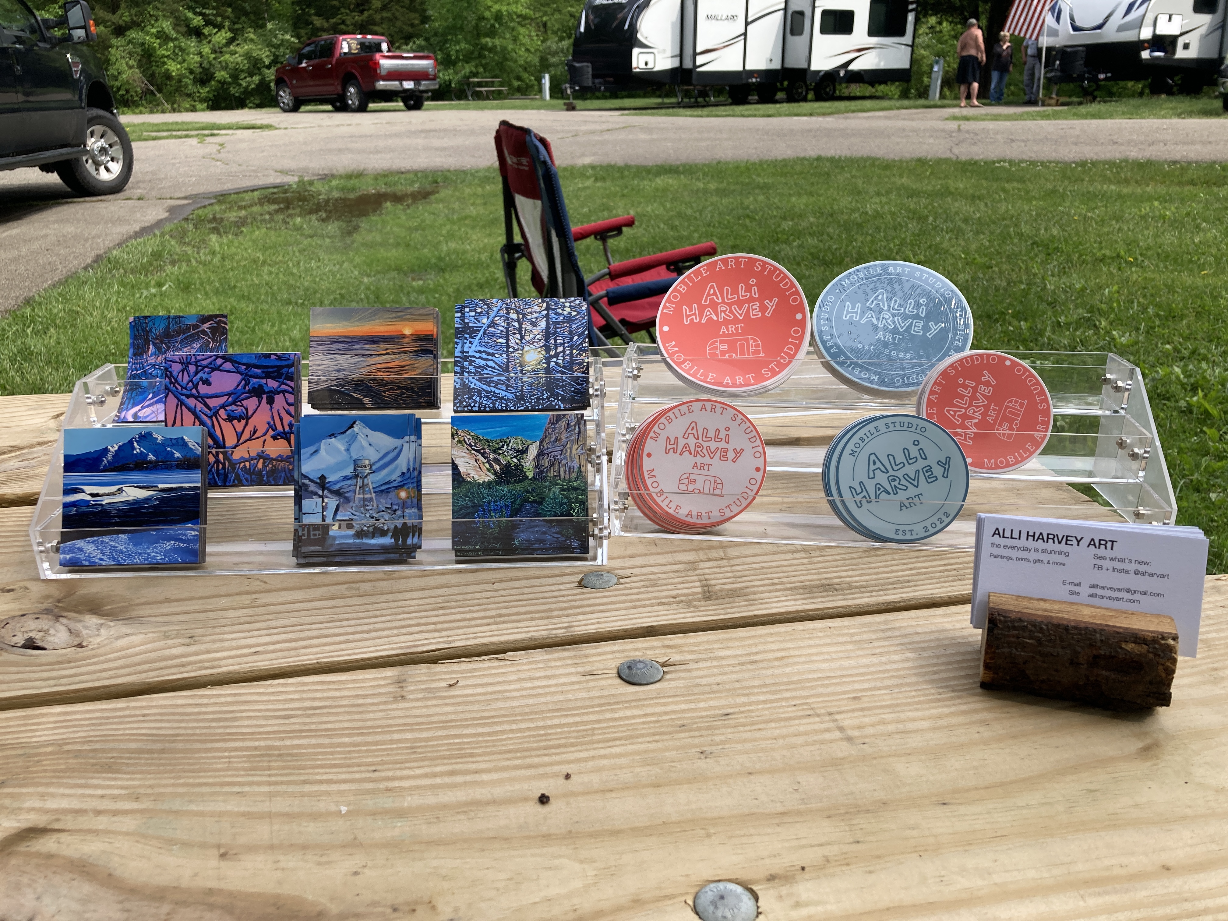 And now, I’m sitting here in the Mobile Art Studio itself, having picked it up in Ohio and learned to drive it, having completed my first commission and about to start another one this morning, with my sister getting ready for the day and Wes about to fly in. I made it to the desert. I get to see my stepdaughter in a couple short weeks. We’ll caravan around my (other) favorite part of the world; I’ll keep on painting, writing, and consulting.