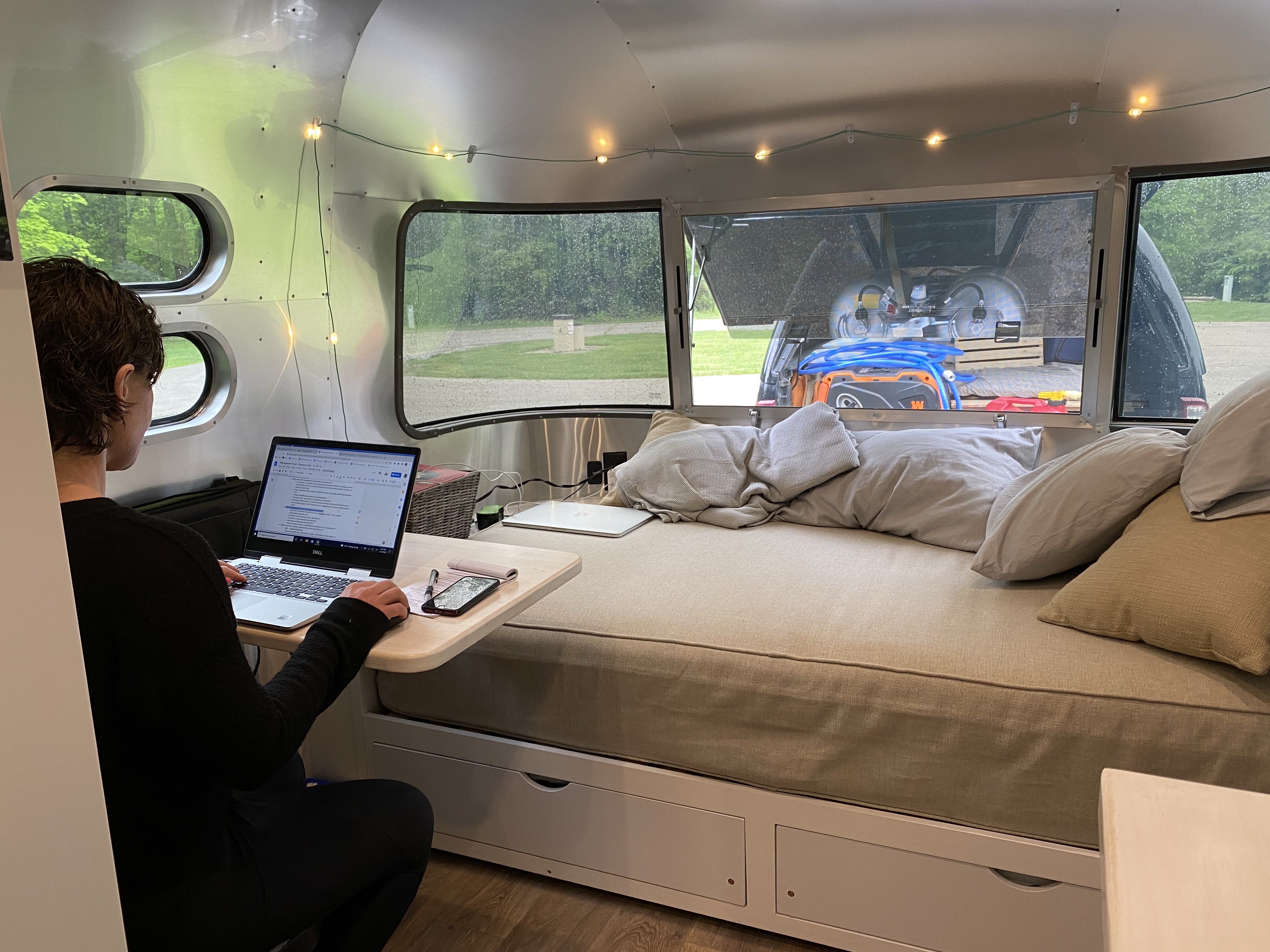 The most extreme measure we took was Airbnb’ing our house and living in our truck for weeks at a time. I remember saying to Wes as we lay in the back of Fluffy the Dodge Ram’s slightly leaky truck bed as rain poured (poured!) down and we helplessly watched a trail of water snake down the side onto any already sodden clump of paper towels, this is in the name of a life change. This time next year it will be better. We’re doing this, for that.