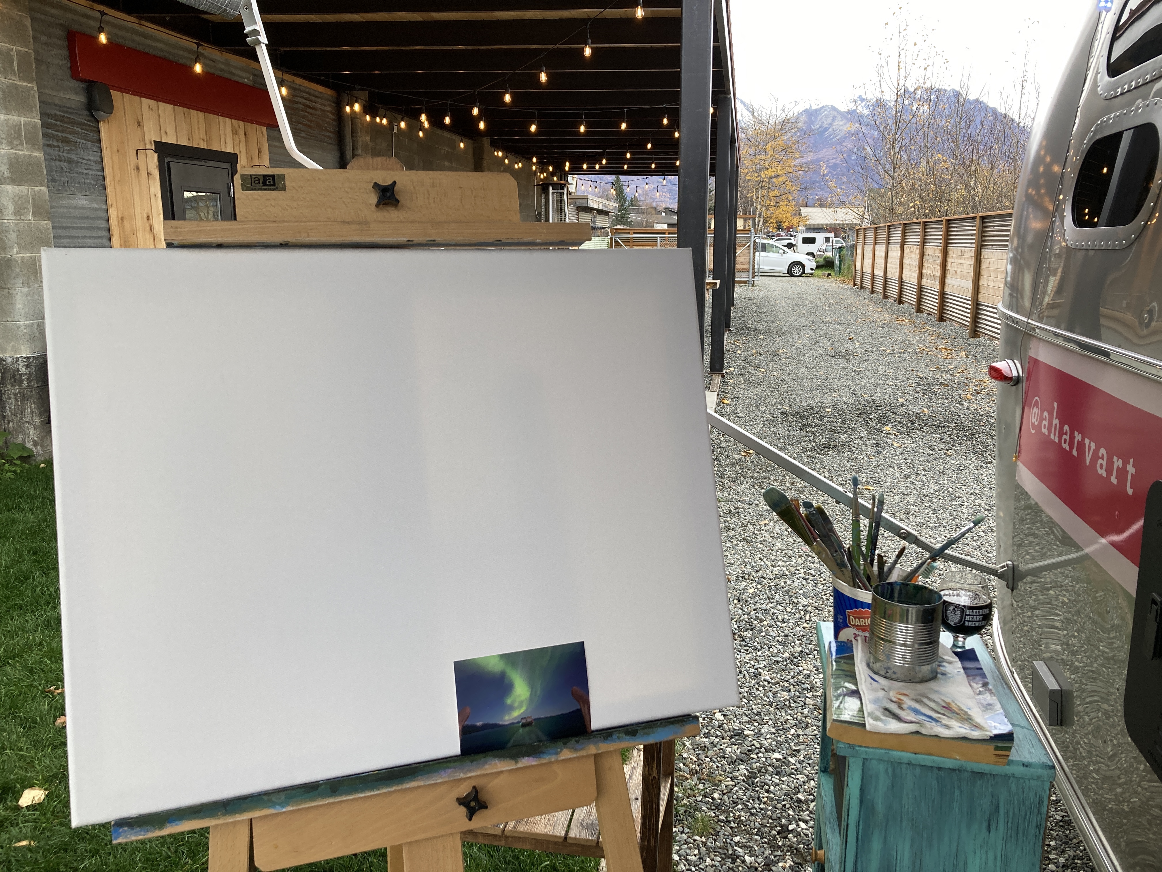 Oh, and in this case I also picked up neon green paint. This is my first aurora painting, but not my last!