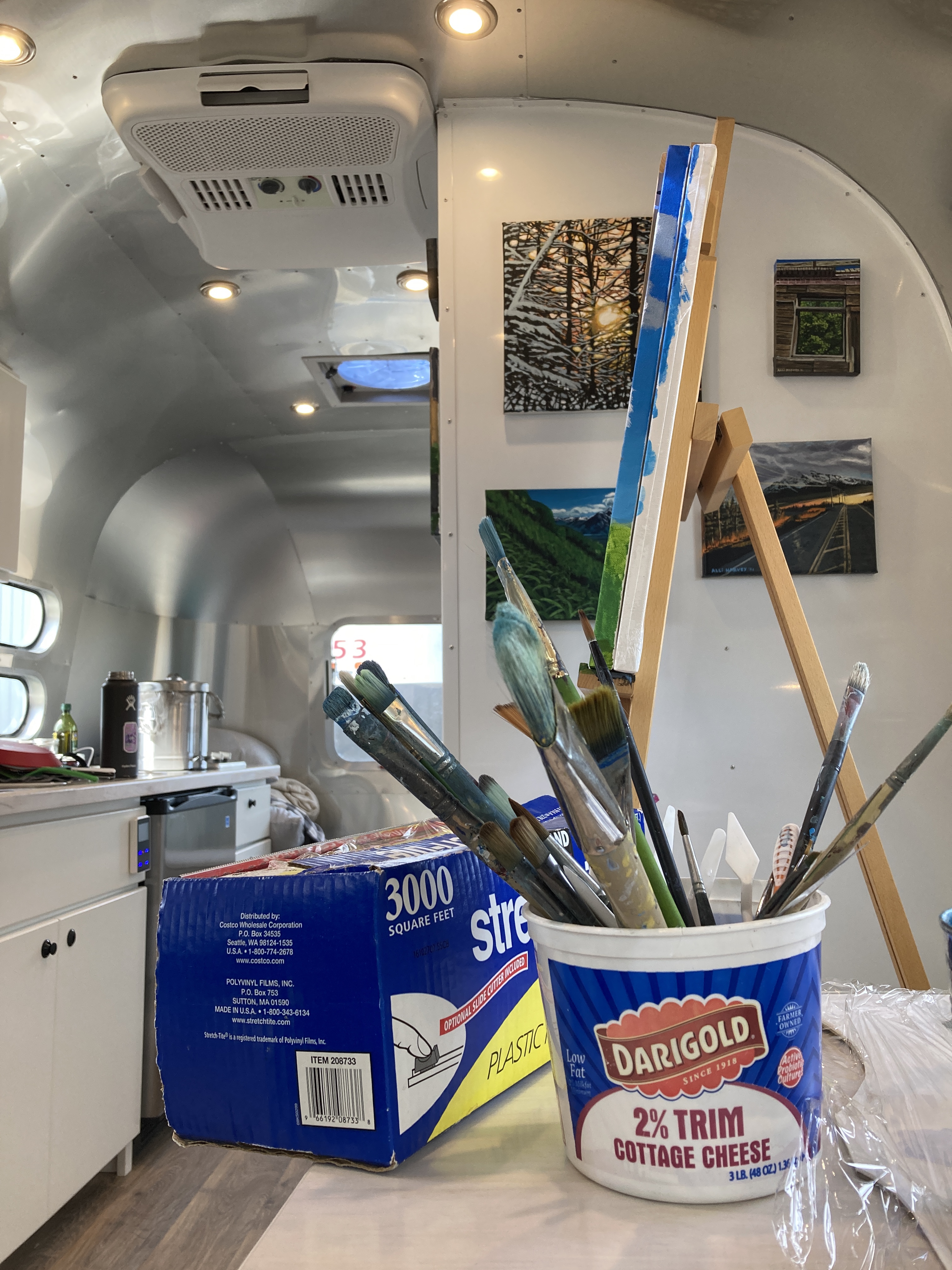 One year later, in 2023, my husband and I were able to fully make that dream happen. We sold our house. We got rid of a bunch of stuff, and packed up the rest. We quit our salaried jobs, and we towed the studio (and ourselves!) toward a new life. I would prioritize art and painting as my primary vocation. Wes, my husband, was going to be a wilderness guide.